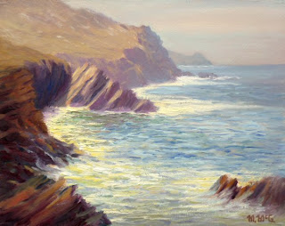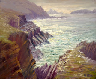 Well Day 5 of my West Kerry painting trip! And what a day it turned out to be, not a cloud in the sky all day, and the Atlantic looking a Mediterranean turquoise blue. I arrived at Coumeenole at about 8-00am, and did this one looking South over the beach.